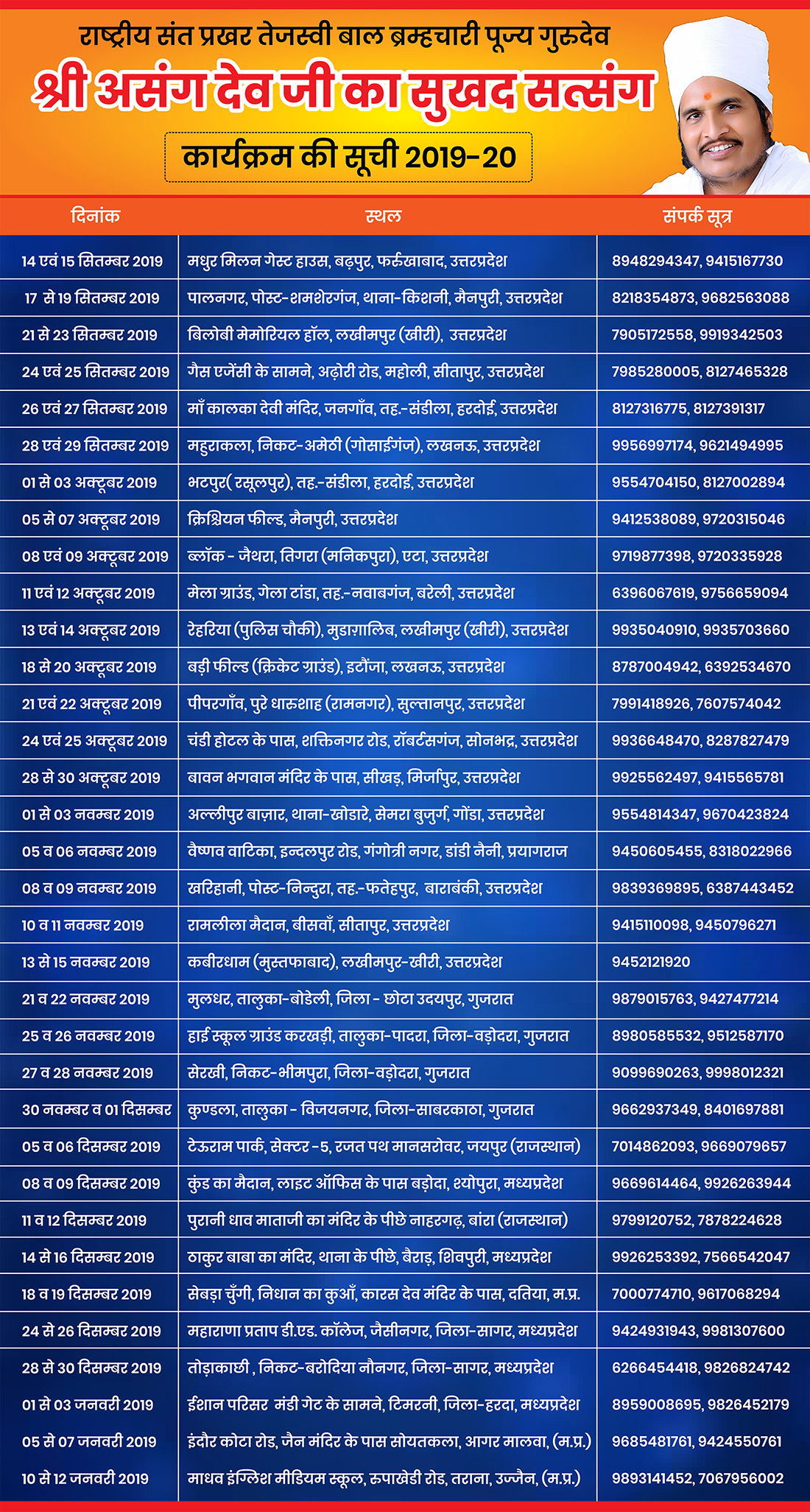 | 38. | 24 से 26 अप्रैल 2026 | परसाही, बजितपुर, भाया - त्रिवेणीगंज, जिला-सुपौल, बिहार | 35 कि.मी | 1घंटे |